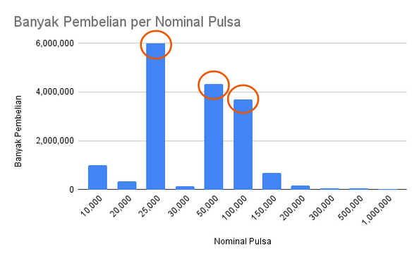 The most purchased credit nominal is 25k, 50k, 100k.