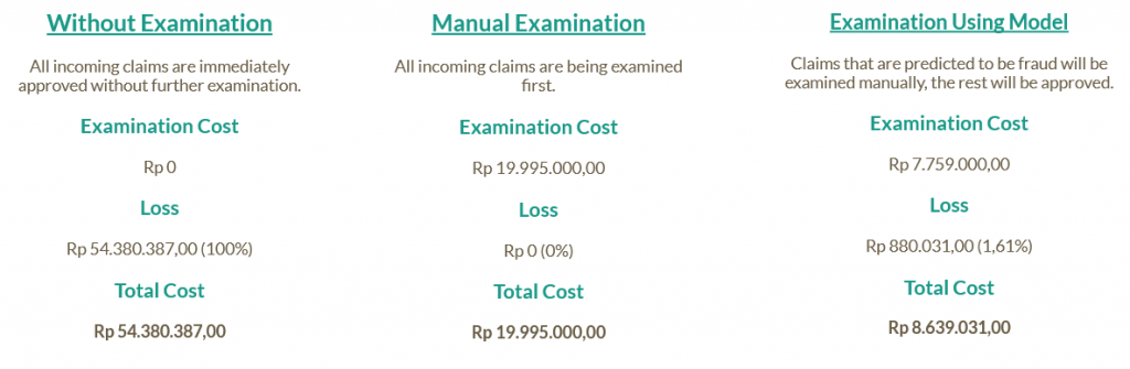 Assuming the operational cost of checking 1 claim is IDR 1000, we can perform this calculation based on the model result.