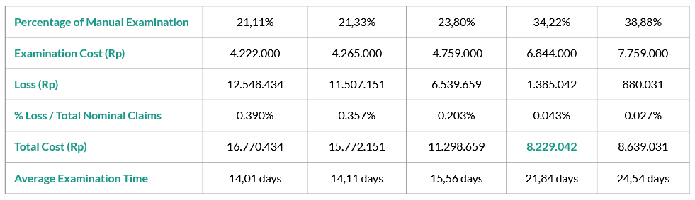 Manual examination will be more profitable if the cost of examine per claim is < IDR 71.